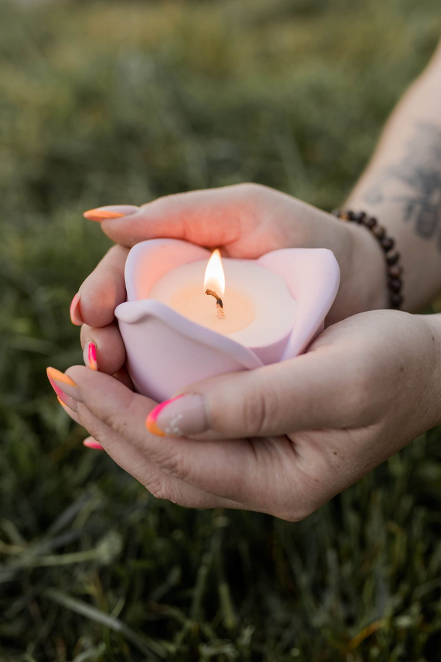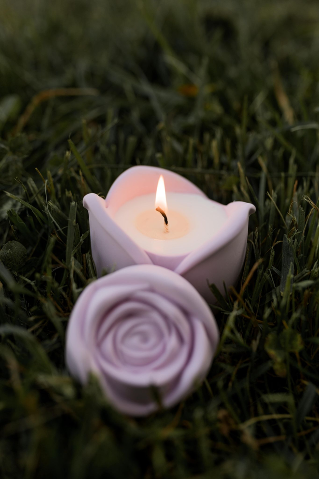 Bougie délicatement parfumée dans son écrin de rose