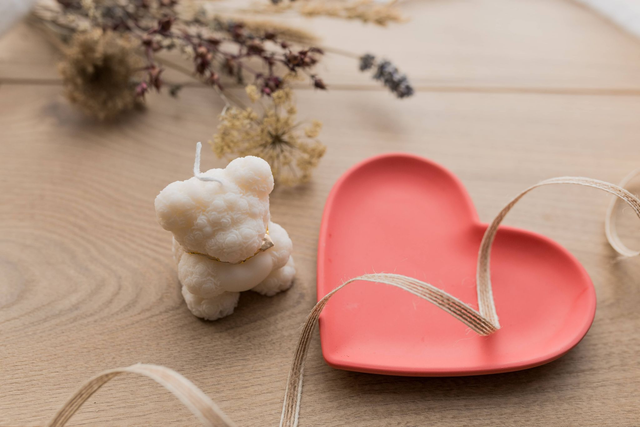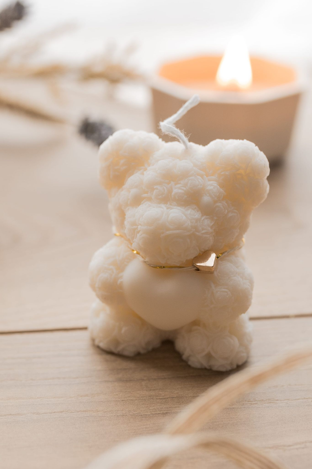 Bougie ourson et coupelle coeur