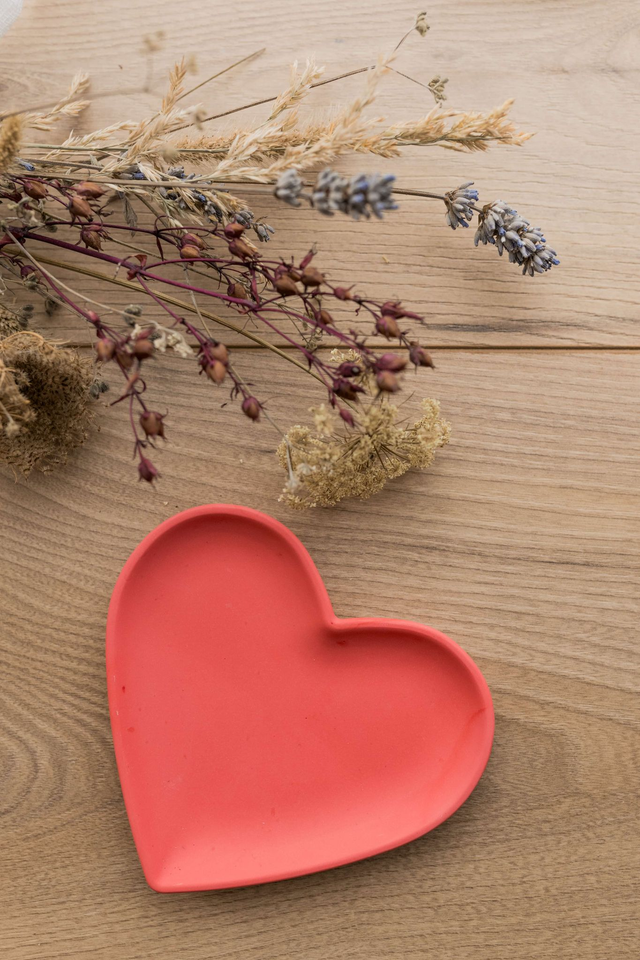Ainsi qu'une coupelle coeur composé de poudre de gypse et d'un acrylique à base d'eau.